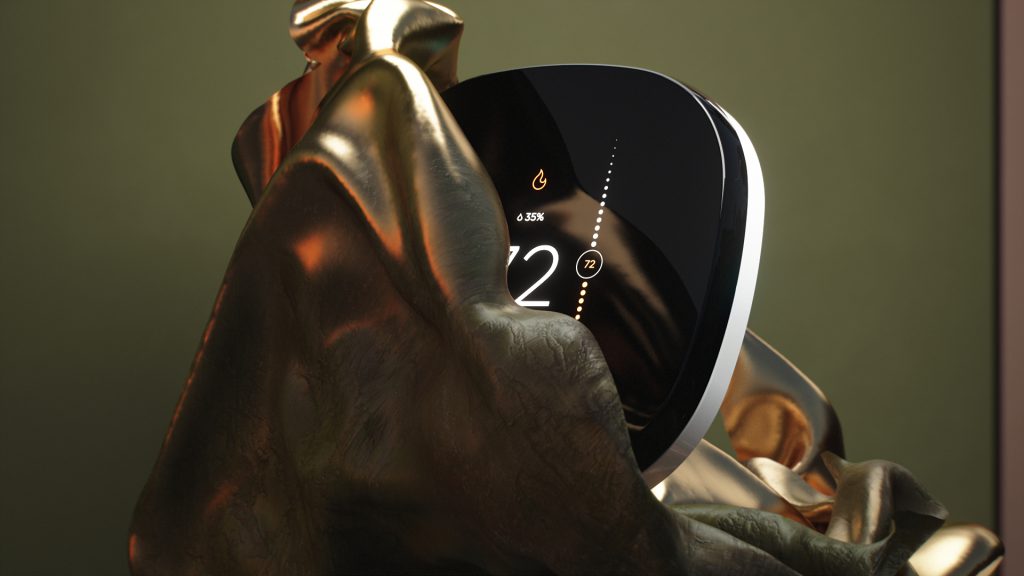 We explored visual representations of the ecobee SmartThermostat’s effect on both the home and the environment, while showcasing its sleek engineering. The product is displayed like a jewel, a dark reflective stone with beautiful highlights that romance its crisp edges.